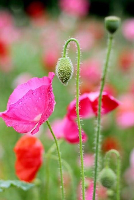 虞美人生长发育适温5-25°C,春夏温度高地区花期缩短,昼夜温差大。夜间低温有利于生长开花,在高海拔山区生长良好,花色更为艳丽。寿命3-5年。耐寒,怕暑热,喜阳光充足的环境,喜排水良好、肥沃的沙壤土。不耐移栽,忌连作与积水。能自播。花期5-8月。